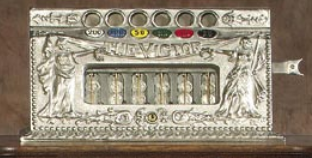 After making several unsuccesful stops searching for this machine my time was starting to run short as everyone with me would rather catch butterflies than look for some silly od slot machine. Sensing their impatience,I decided to make our final stop at a little old casino at the bottom of Main Street.I walked through the double doors and into this very quaint one room casino.I was headed towards thecage to ask if they might know where I could find a guy named Blake,when my heart began to speed up.I didn't make it very far into the casino,for off to my rigth i spotted a little Seeburg L.I quikcly walked over to check out this little musical wonder.When I finished looking it over,it was time to find out whom it belonged to and if it was for sale.I turned back to walk across the room I saw pay dirt...The Musical Victor was standing proud and tall between the two picture windows of the building.I couldn't believe I was lucky enough to stumble upon this machine wich I had been chasing but my luck was about to change.
