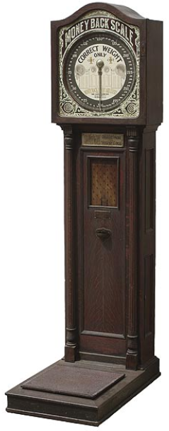 I have tried to locate this scale in the old Caille catalogs but I have had no good luck. I don't believe many were ever produced as this is the only known model to ever surface. This style money back scale model would have been replaced by the later George Washington Scale wich coould also be purchased in a money back version.