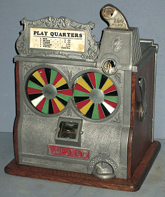 The highest number known on a Fey Liberty Bell is #99 and since so few of them are known today it proves that Fey didn't have an enormous production facility like his competition. I tried to track down as many Duo serial numbers as possible but sadly, they also did not survive in great numbers. Some of the serial numbers known on the Duos that I have been able to locate are 12, 25, 26, 34, 41, 47, 48, 50, 88,105, & 388. I have also found a few of them with possible operator numbers stamped on the goosenecks such as 660, 6073 and others with no numbers at all. They were produced in three different denominations, penny, nickel, and quarter. The serial numbers above represent two penny machines, four nickel machines, and seven quarter machines.