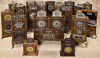 These early Victorian slot machines were made by well over 30 manufactures back then such as Mills Novelty, Caille Brothers and Watling Manufacturing. The slot manufactures copied one another as there were very strict patent laws on gambling devices by the U.S. patent office. Due to this situation nothing was safe and you will find many machines very similar in style and with the same names such as Owl, Judge, Dewey, Chicago, Big Six, Jockey, Roulette, Puck, and many others.
